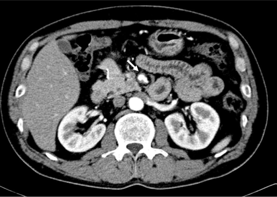 상복부 통증을 주소로 내원하여 통증의 원인을 찾기 위해 상부 위장관 내시경을 시행하였으나 특이 소견 없어 CT를 시행하였음.