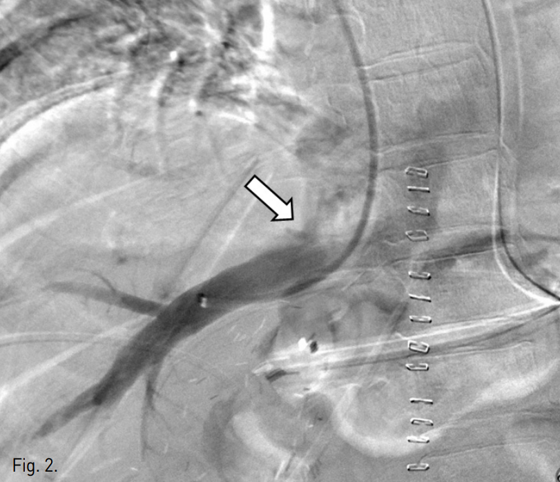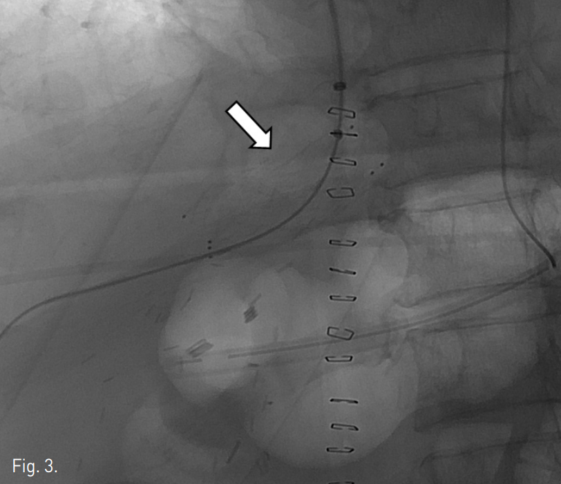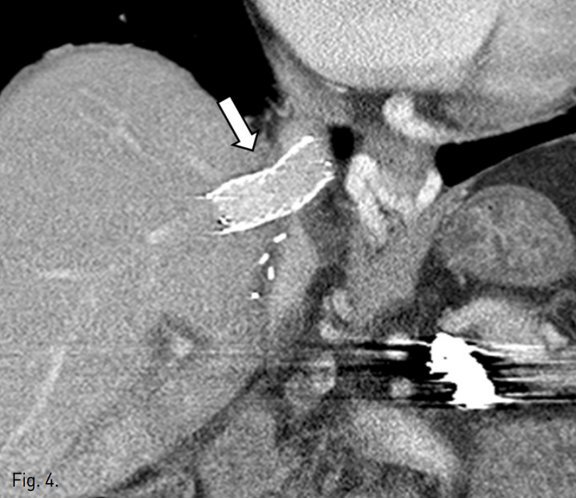 트 내부의 혈전 또는 꼬임 등 이상소견은 보이지 않았다(Fig. 4). 환자는 보존적 치료 후 퇴원하였다.
