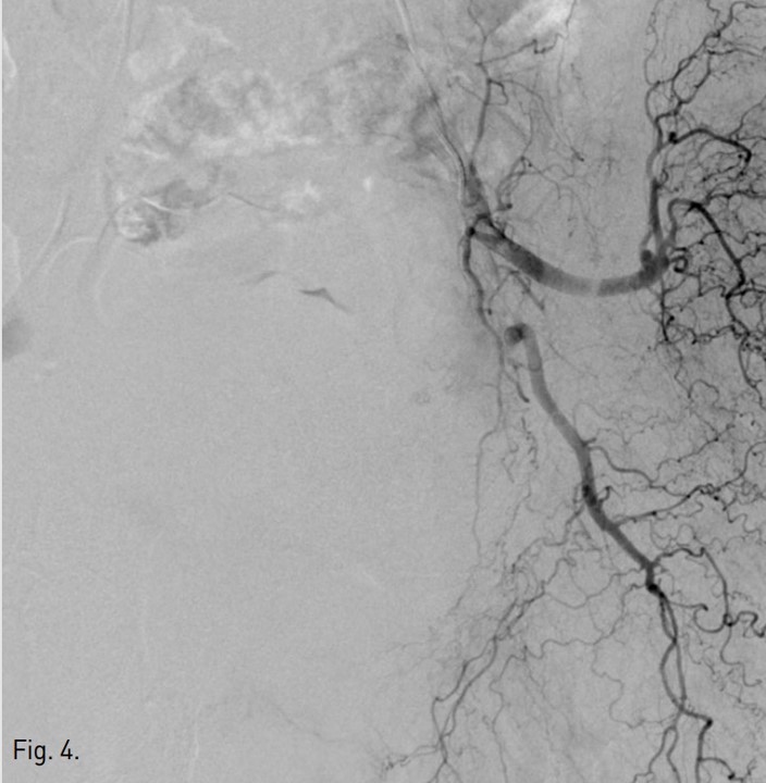 Fig. 3. Left vesical artery was embolized with gelfoam after superselection with a microcatheter.