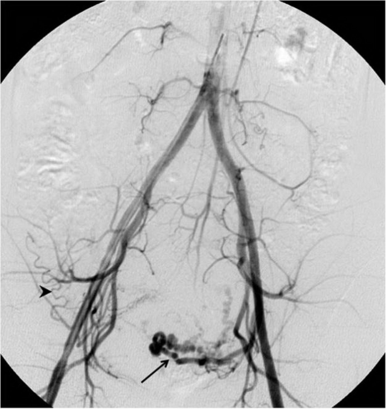 Aberrant ovarian collateral artery, external iliac artery, uterine artery embolization