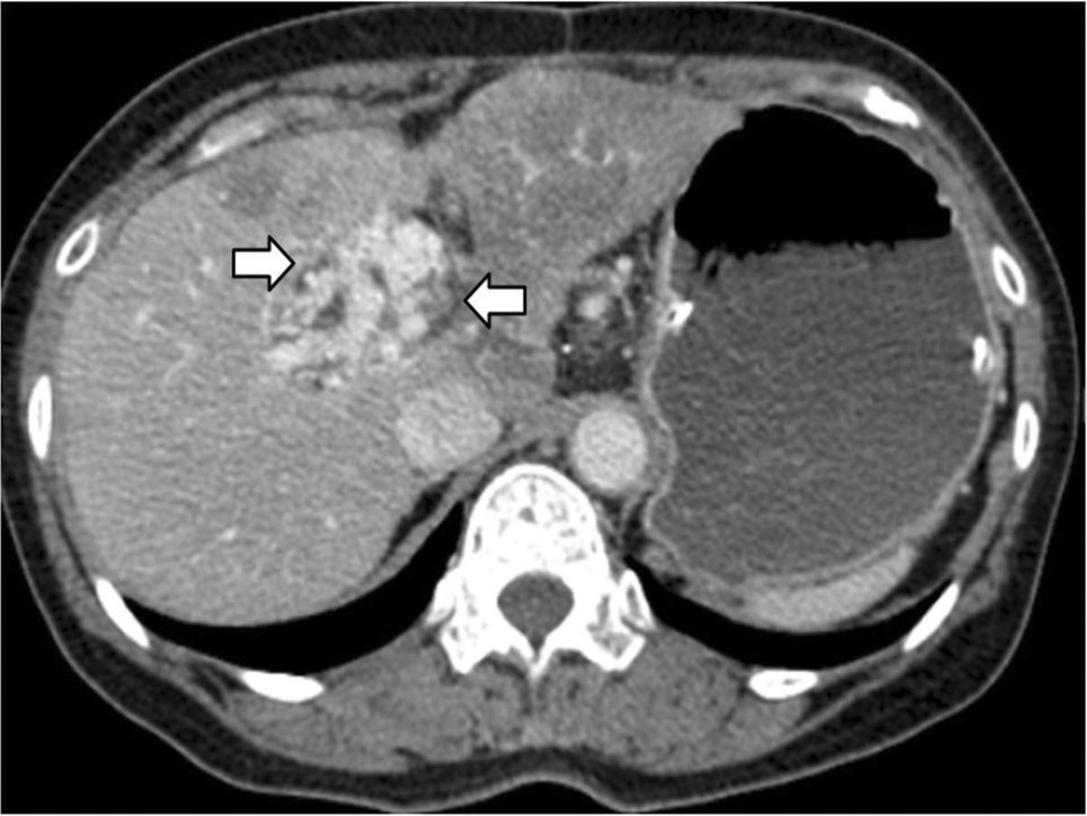 췌관 팽대부암으로 2011년 4월 21일 유문보존췌십이지장절제술을 시행받고 총간동맥 가성동맥류로 색전술을 시행한 과거력이 있음. 복부불편감과 구토, 설사가 발생하여 시행한 전산화 단층촬영에서 주간문맥의 폐색과 간-공장문합부위에 정맥류 출혈이 의심되었다.