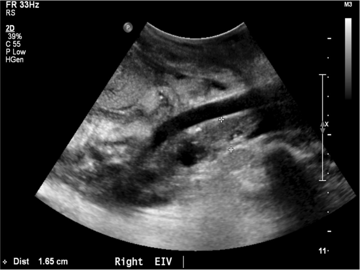 Fig. 1. Ultrasonography demons tated completely occlusive thrombus with in the right external iliac vein.