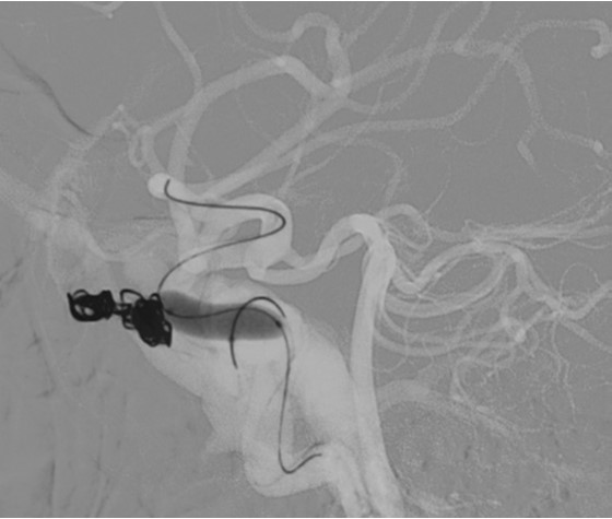 A. Coil embolization was performed for carotid-cavernous fistula.