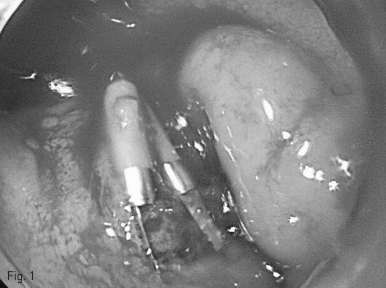 본 중례와 달리 출혈이 간헐적으로 있으면 혈관조영술에서 혈관외 유출이 보이지 않을 수 있는데, 이런 환자에서는 내시경 소견에 근거하여 blind embolization을 시행할 수 있으며 출혈 부위를 조영하면서 시행한 색전술과 결과의 차이는 없다. 이런 경우, 혈관조영술전에 시행한 내시경에서 출혈부위 주변에 클립으로 표시를 해주면 혈관외 유출이 보이지 않아도, 출혈이 있는 혈관의 위치를 결정할 수 있어 도움이 될 수 있다.