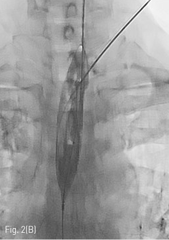 (B) On fluroscopy, the position of inflated balloon is adjusted between the thoracic inlet and Lt. clavicle. Under US guidance, the Balloon is punctured with an 18 G puncture needle through the left neck.