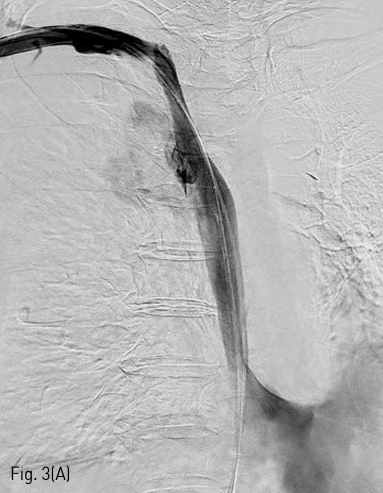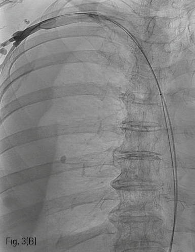 (A) Right subclavian venogram shows extravasation of contrast material into right hemithorax.