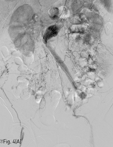 (A) Abdominal aortography shows well correlated findings with CT angiography.